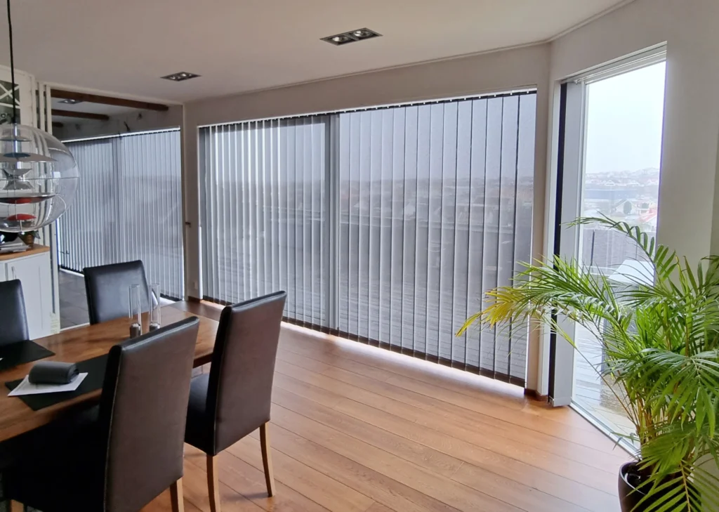Lamellerna justeras enkelt för att släppa in precis så mycket ljus du vill. När de sluts skapas ett effektivt insynsskydd, samtidigt som den textila känslan och rymden i rummet bevaras.